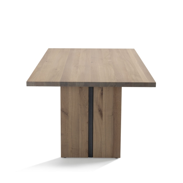 Durch seine großzügige Breite und komfortable Höhe bietet COCO ausreichend Platz zum gemütlichen Beisammensein und Schlemmen. Neben einer zeitlosen, eckigen Variante wird das Angebot um eine Version mit Baumkante ergänzt. Alle Ausführungen punkten durch ihr außergewöhnliches und markantes Untergestell, welches mit einem Metalleinsatz veredelt wird.